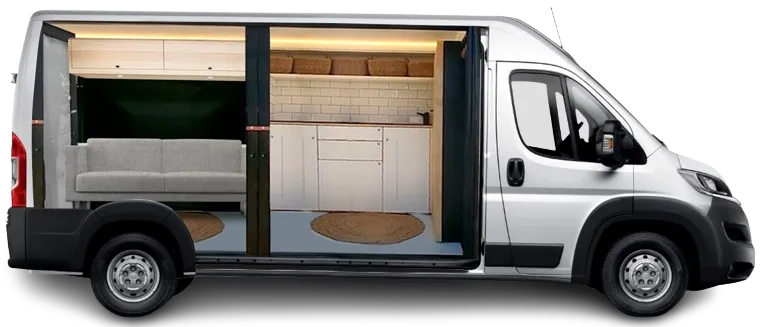 Con un innovador sistema de módulos adaptables, extraíbles y de fácil montaje, convierte tu furgoneta de gran volumen en un confortable y estiloso hogar, y sin la necesidad de homologar. Fácil, cómodo y muy rápido.